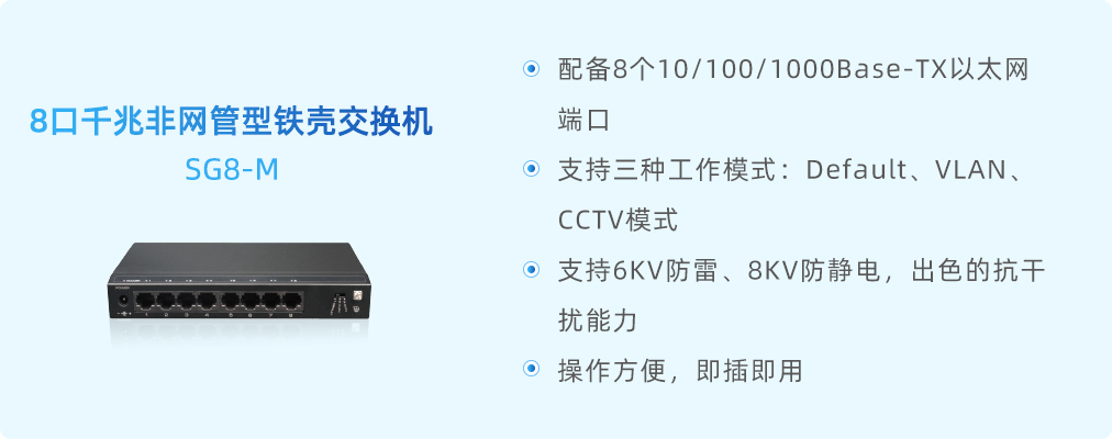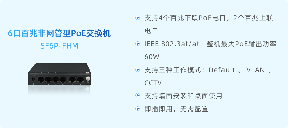 該系列交換機(jī)支持Default、VLAN(虛擬局域網(wǎng))和CCTV三種工作模式,這種多樣化的工作模式為用戶提供了極大的靈活性和便捷性。Default模式所有端口均可自由通信,適用于簡單網(wǎng)絡(luò)環(huán)境,無需復(fù)雜配置即可快速搭建;VLAN模式下聯(lián)端口相互隔離,但可與上聯(lián)端口通信,能夠有效隔離不同部門的網(wǎng)絡(luò)流量,提升網(wǎng)絡(luò)的安全性和管理效率;而CCTV模式則是針對安防監(jiān)控系統(tǒng)的特殊需求定制,通過一鍵設(shè)置即可將下聯(lián)端口速率調(diào)整為10M,并延長最遠(yuǎn)傳輸距離至250米,這一特性尤其適合大規(guī)模、遠(yuǎn)距離的監(jiān)控網(wǎng)絡(luò)部署。