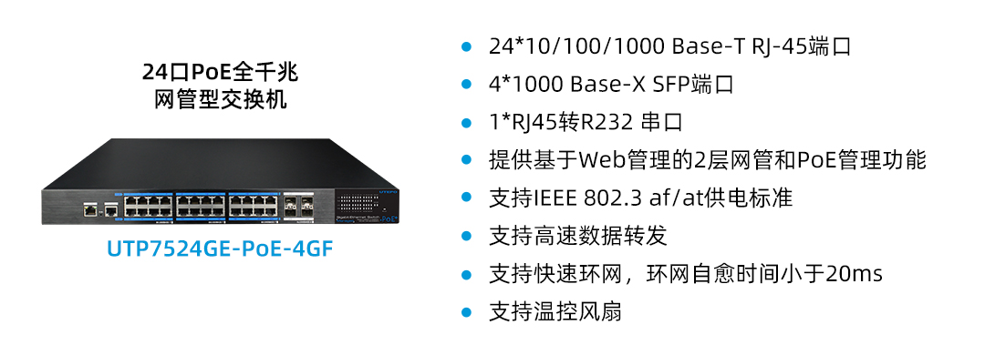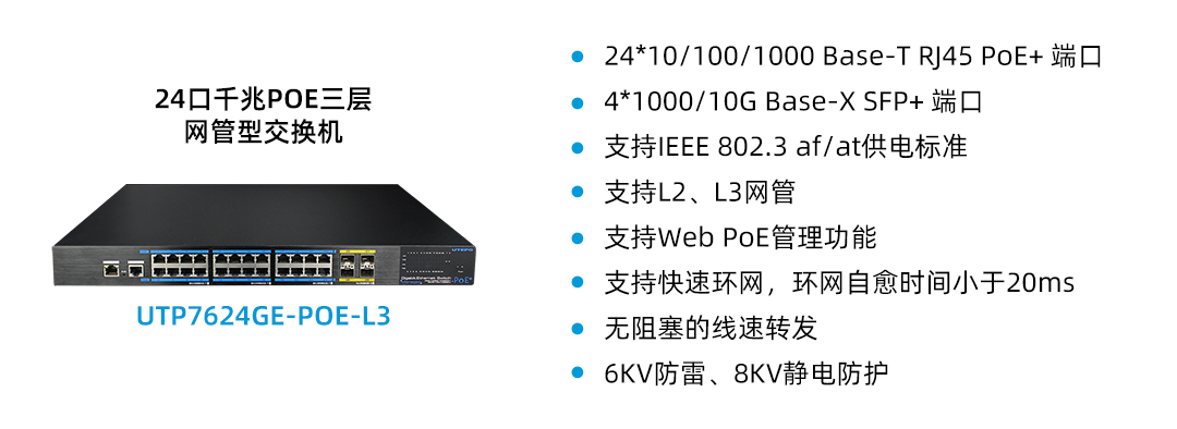 優(yōu)特普7系列商用以太網(wǎng)/PoE交換機在端口設(shè)計上同樣表現(xiàn)出色,采用豐富的光電混合端口設(shè)計,并配備萬兆上聯(lián)端口,滿足了不同場景下對網(wǎng)絡(luò)接口類型的多樣化需求。無論是長距離光纖傳輸,還是短距離連接,都能輕松應(yīng)對,為用戶提供最大的靈活性和擴展性。此外,該系列PoE交換機還支持IEEE 802.3 af/at供電標準,使得網(wǎng)絡(luò)部署更加靈活,能夠直接為IP攝像頭、無線AP等PoE設(shè)備供電,簡化了布線工作,降低了成本。