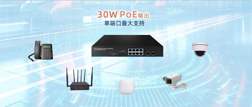 提供PoE供電功能,符合IEEE 802.3af/at PoE標準,單個端口最大支持30W的PoE輸出,可為無線接入點、網(wǎng)關(guān)、IP電話、監(jiān)控攝像頭等設(shè)備提供穩(wěn)定的電源。