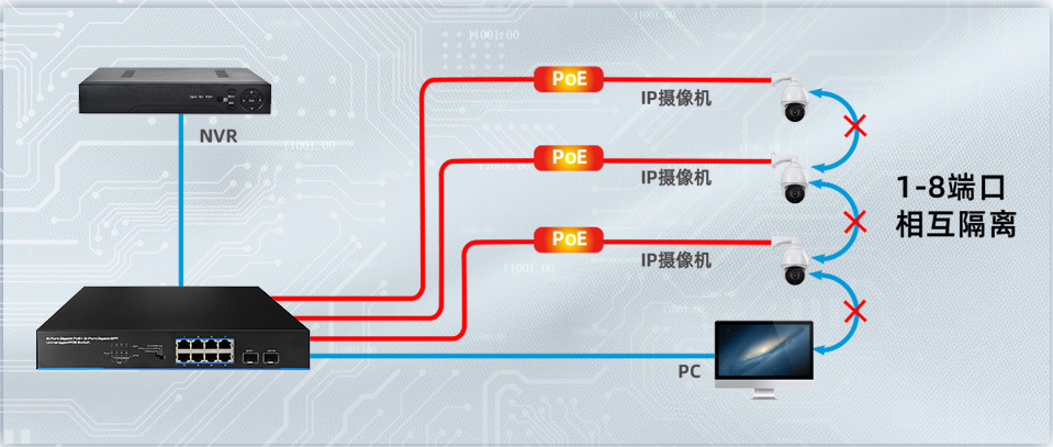 支持4kV防雷保護,能適應(yīng)復(fù)雜的安防監(jiān)控環(huán)境。
