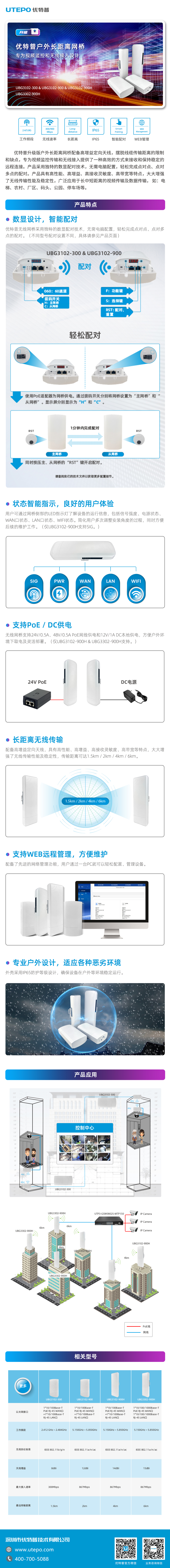 ● UBG3302-900H:15dBi 增益 2*2MIMO 天線,最遠(yuǎn) 6km 傳輸距離