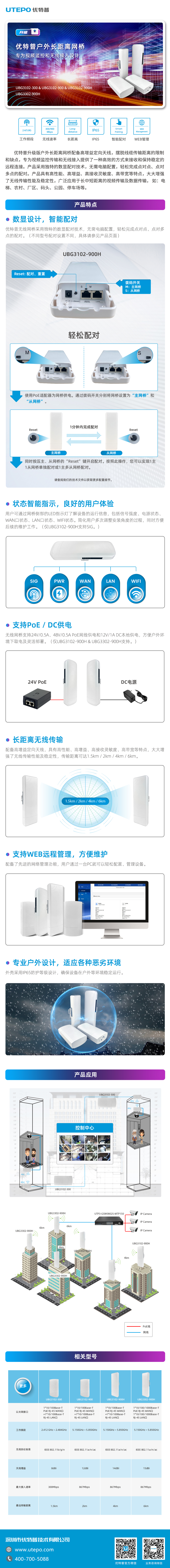 ● UBG3302-900H:15dBi 增益 2*2MIMO 天線,最遠 6km 傳輸距離