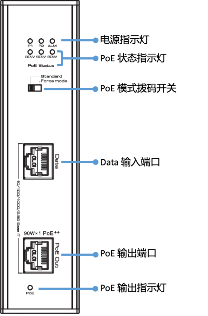 該系列產(chǎn)品為90W工業(yè)級(jí)PoE供電器。