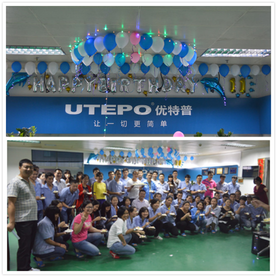 雙十一來(lái)臨之際,深圳市優(yōu)特普科技有限公司11周年也款款而至,在這個(gè)“三”11重逢的喜慶時(shí)刻,優(yōu)特普全體員工齊聚一堂,共同分享來(lái)自這個(gè)大家庭的幸福和喜悅。