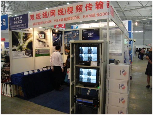 工作人員介紹相關(guān)產(chǎn)品,本次優(yōu)特普共在展會現(xiàn)場展示了安防監(jiān)控系統(tǒng)產(chǎn)品的演示效果和高清VGA延長系列產(chǎn)品的演示效果。
