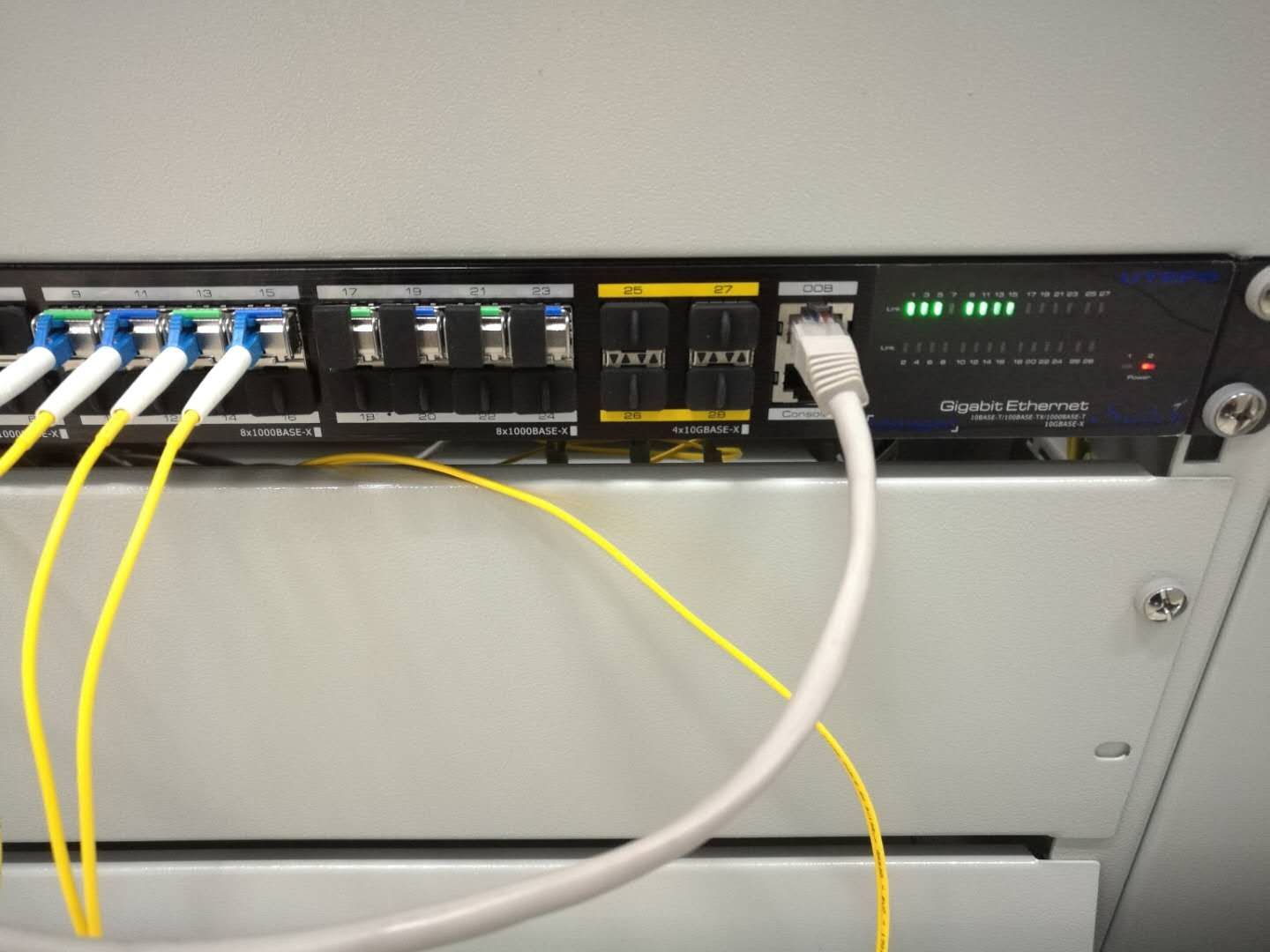 3、 匯聚交換機UTP7624GS-L3,并接入客戶端、系統(tǒng)管理服務(wù)器和存儲等,并上傳到遠端機房;