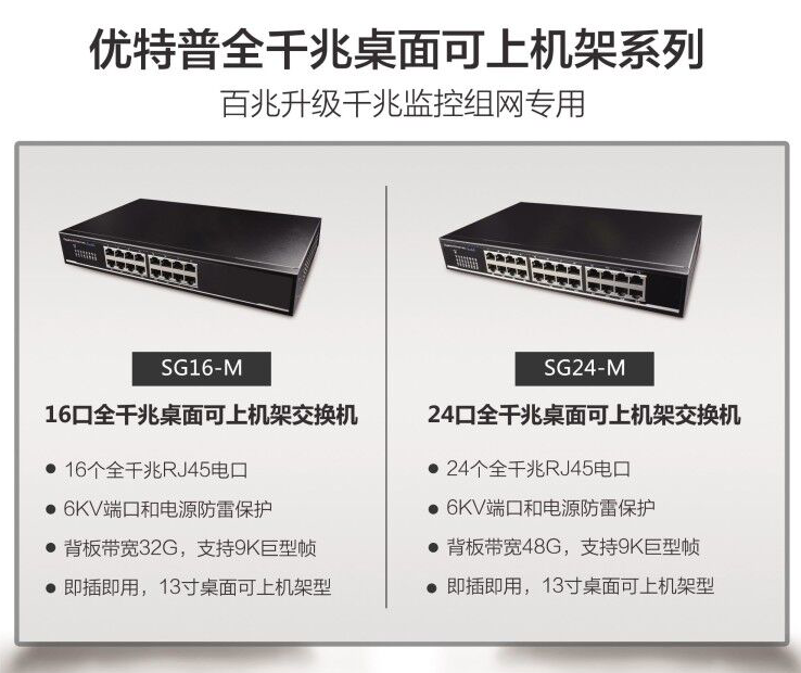 優(yōu)特普公司針對當前網(wǎng)絡建設及應用痛點,結合中小型企業(yè)千兆組網(wǎng)及監(jiān)控組網(wǎng)應用特點,最新推出了16/24口全千兆防雷工程專用交換機。該產(chǎn)品系列支持學校模式、監(jiān)控模式、企業(yè)模式、安全模式和網(wǎng)絡隔離五種工作模式的一鍵切換。