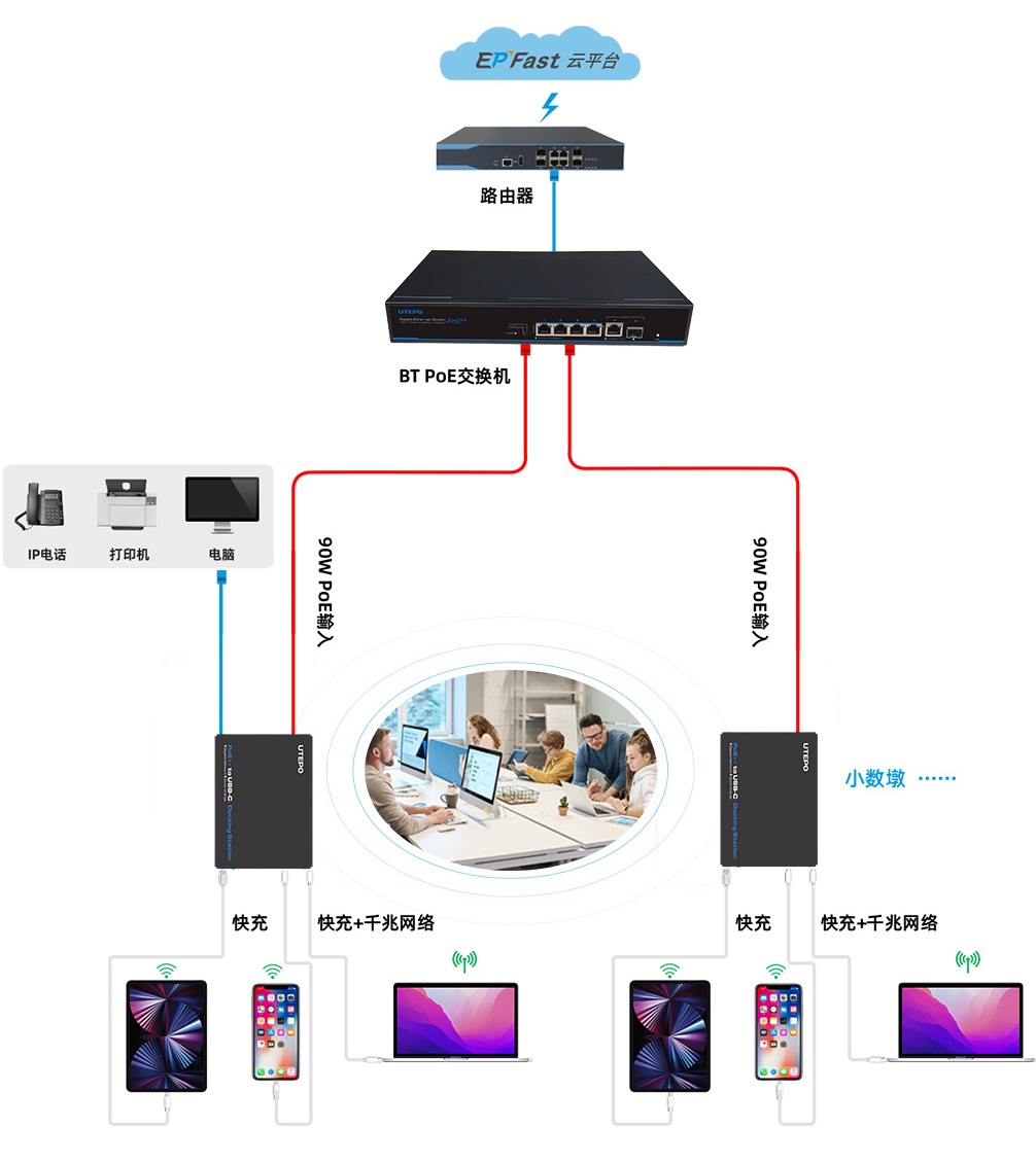 突破30W功率限制,優(yōu)特普UTP6306TS-PSD提供4個千兆bt PoE端口,可為大功率設備提供最大90W的功率并傳輸數(shù)據(jù),如照明、一體機、AI高速攝像機、工業(yè)傳感器等。同時,UTP6306TS-PSD提供1個千兆以太網(wǎng)RJ-45 和1個千兆以大網(wǎng) SFP 上聯(lián)端口以滿足不同傳輸需求。