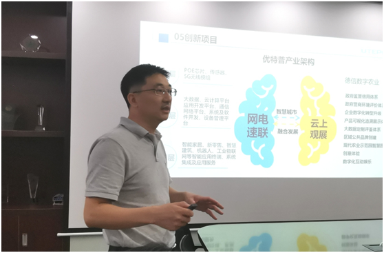 在會(huì)議室,考察團(tuán)領(lǐng)導(dǎo)一行認(rèn)真聆聽了聶懷東董事長關(guān)于企業(yè)主營業(yè)務(wù)、企業(yè)發(fā)展戰(zhàn)略的介紹與匯報(bào),聶懷東重點(diǎn)介紹了優(yōu)特普最新科技創(chuàng)新成果——“網(wǎng)電速聯(lián)云平臺(tái)”和“德信數(shù)字農(nóng)業(yè)物聯(lián)網(wǎng)云平臺(tái)”項(xiàng)目。