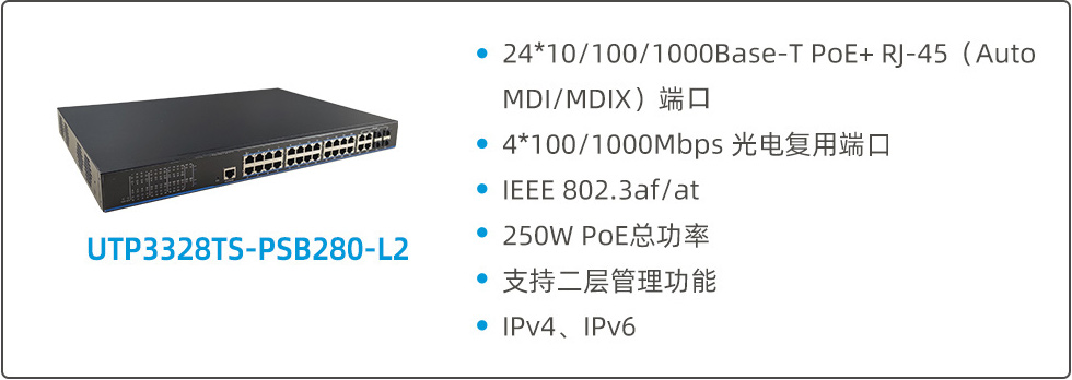該系列產(chǎn)品提供16個或24個全千兆PoE供電端口,單端口可提供最大30W功率,符合IEEE 802.3af/at標準,可為IP終端(如IP攝像機、IP電話、AP等)提供穩(wěn)定、可靠、節(jié)能、安全的供電保障。上行端口配合4個千兆光電復(fù)用端口,大大擴展了設(shè)備的使用范圍,用戶可根據(jù)具體應(yīng)用需求靈活組網(wǎng)。