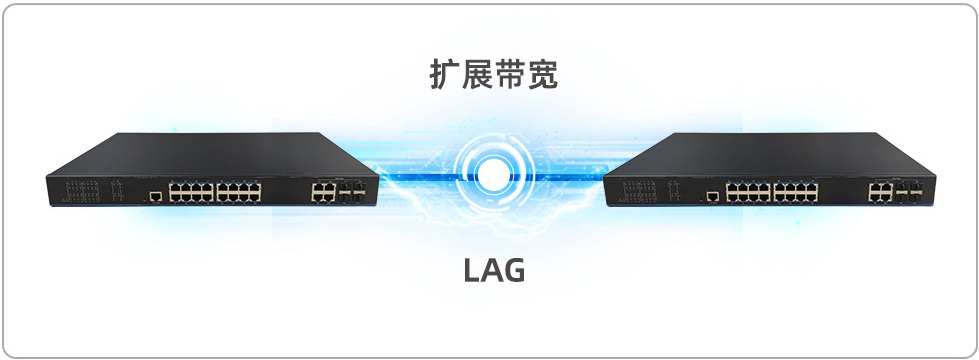 通過鏈路聚合(LAG),用戶可在兩個交換機之間建立多條鏈路以達到擴展帶寬的目的,實現(xiàn)均攤模式。同時,提供鏈路冗余備份,當該組某個成員端口鏈路出現(xiàn)故障時,可以最大限度地減輕網(wǎng)絡(luò)故障。