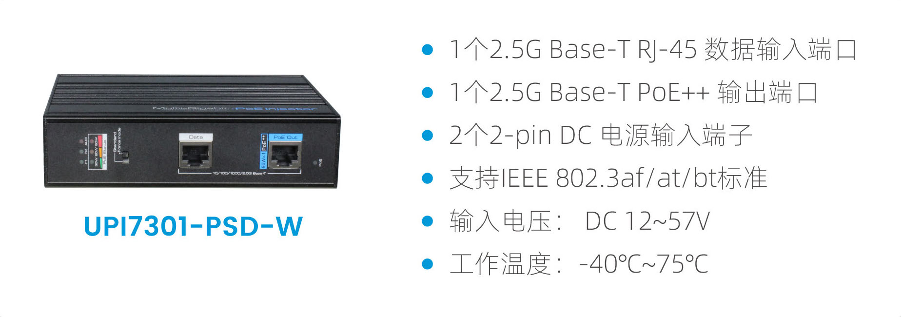 UPI7302-PSD-W和UPI7301-PSD-W均支持寬壓輸入(12V~57V直流電)??筛鶕?jù)實(shí)際需求選用不同規(guī)格的電源為設(shè)備進(jìn)行供電。