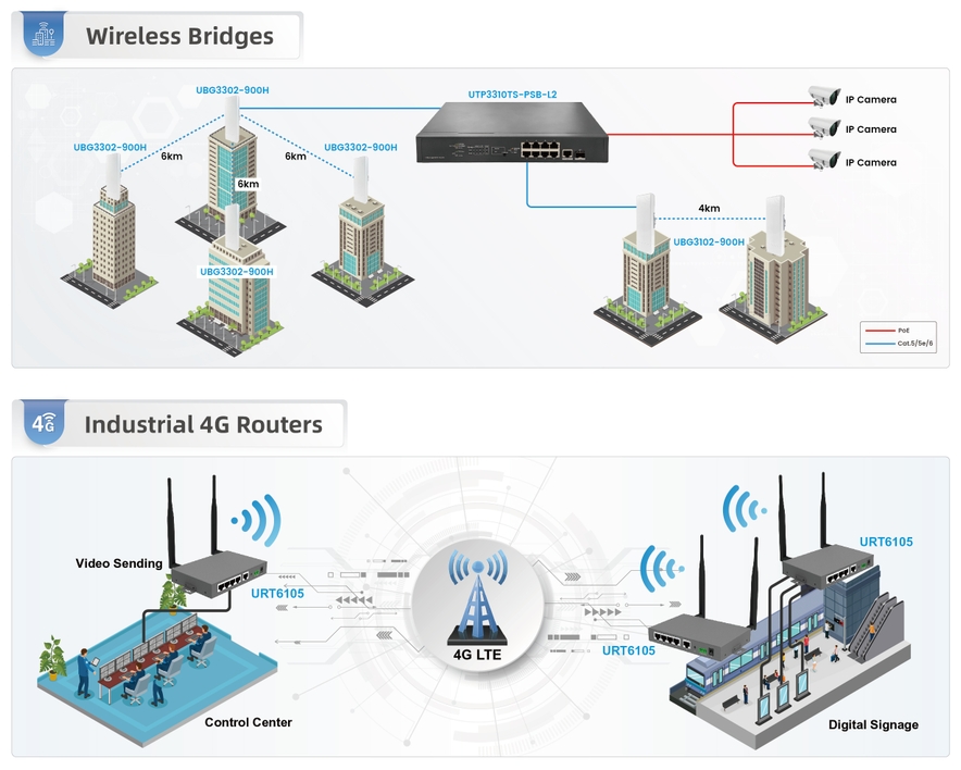 優(yōu)特普也在本次活動中展示了PoE適配器、無線網(wǎng)橋、4G網(wǎng)關(guān)、PoE浪涌保護器等配套類產(chǎn)品。搭配優(yōu)特普交換機產(chǎn)品系列,為不同行業(yè)及不同應(yīng)用場景提供最優(yōu)化的完整傳輸方案。