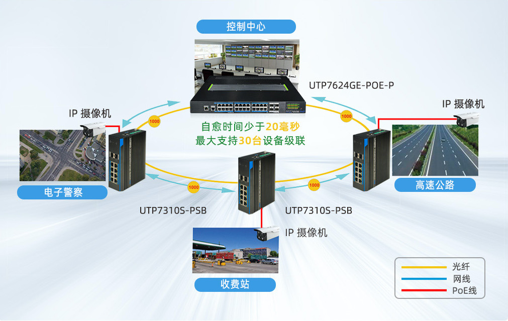 支持快速環(huán)網(wǎng),自愈時(shí)間小于20毫秒,當(dāng)主鏈路出現(xiàn)故障,備份鏈路開(kāi)始工作。