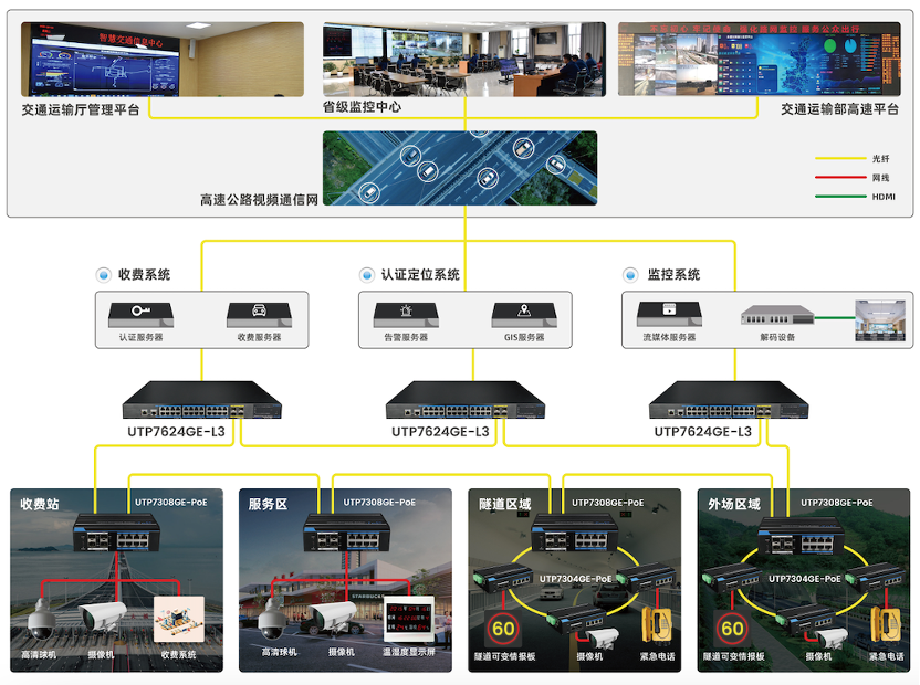 通過對交通業(yè)務(wù)狀況的深入分析,優(yōu)特普打造了針對交通復(fù)雜環(huán)境,基于PoE供電、PoE看門狗、永久PoE技術(shù)、智能自愈等技術(shù)工業(yè)級交換機(jī),通過以太網(wǎng)線纜為各終端供電,實(shí)現(xiàn)網(wǎng)絡(luò)和供電一體化。