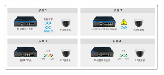 PoE Watchdog(看門狗),實(shí)現(xiàn)PoE攝像機(jī)掉線自動(dòng)偵測、自動(dòng)重啟,減少系統(tǒng)維護(hù)成本。