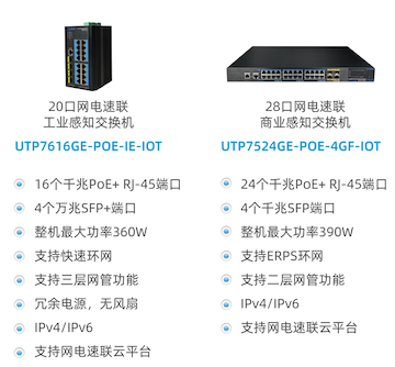 優(yōu)特普提供多端口匯聚、核心交換機(jī),產(chǎn)品支持豐富的二層、三層網(wǎng)管功能,在可用性、可擴(kuò)展性和安全性方面具有良好優(yōu)勢。搭配可視化運(yùn)維綜合管理平臺(網(wǎng)電速聯(lián)云平臺),網(wǎng)絡(luò)管理員可對交換機(jī)、網(wǎng)關(guān)、攝像機(jī)、傳感器、智慧桿等物聯(lián)設(shè)備的網(wǎng)、電數(shù)據(jù)進(jìn)行全方位管理。