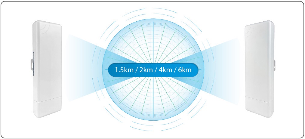 配備高增益定向天線,具有高性能、高增益、高接收靈敏度、高帶寬等特點(diǎn),大大增強(qiáng)了無(wú)線傳輸性能及穩(wěn)定性,傳輸距離可達(dá)1.5km / 2km / 4km / 6km。