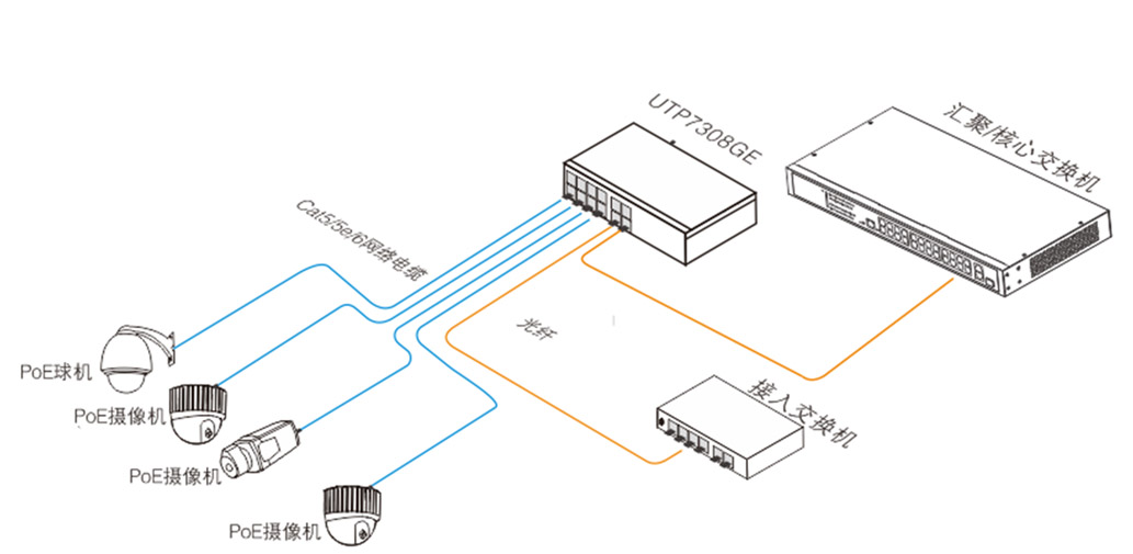 ● UTP7308GE-POE:8*10/100/1000Base-T PoE+ RJ-45端口,4*1000Base-X SFP端口