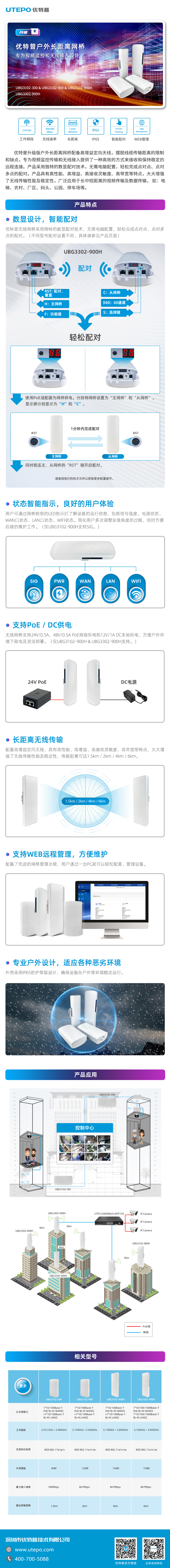 ● UBG3302-900H:15dBi 增益 2*2MIMO 天線,最遠 6km 傳輸距離