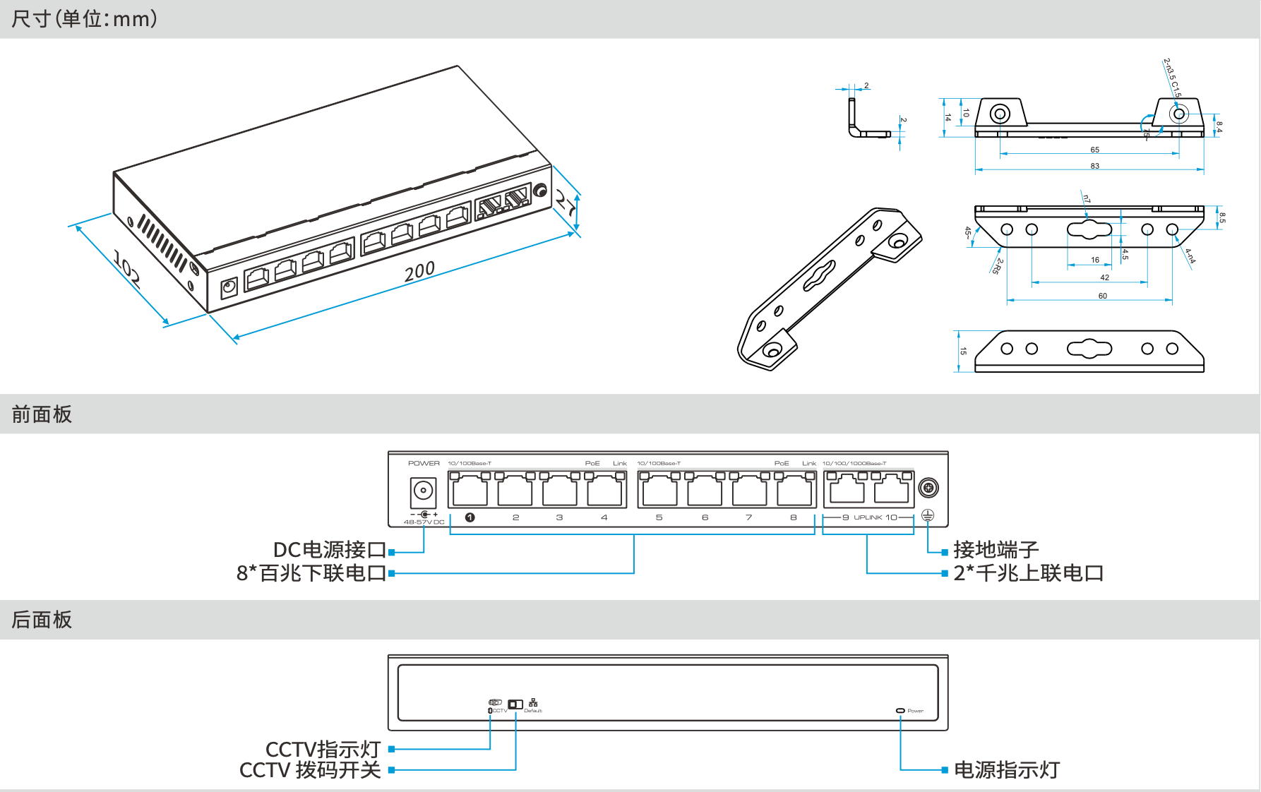8*下聯(lián)端PoE指示燈 |